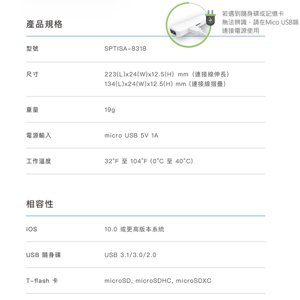 注意: iPhone/ iPad 只支援 lightning 接頭